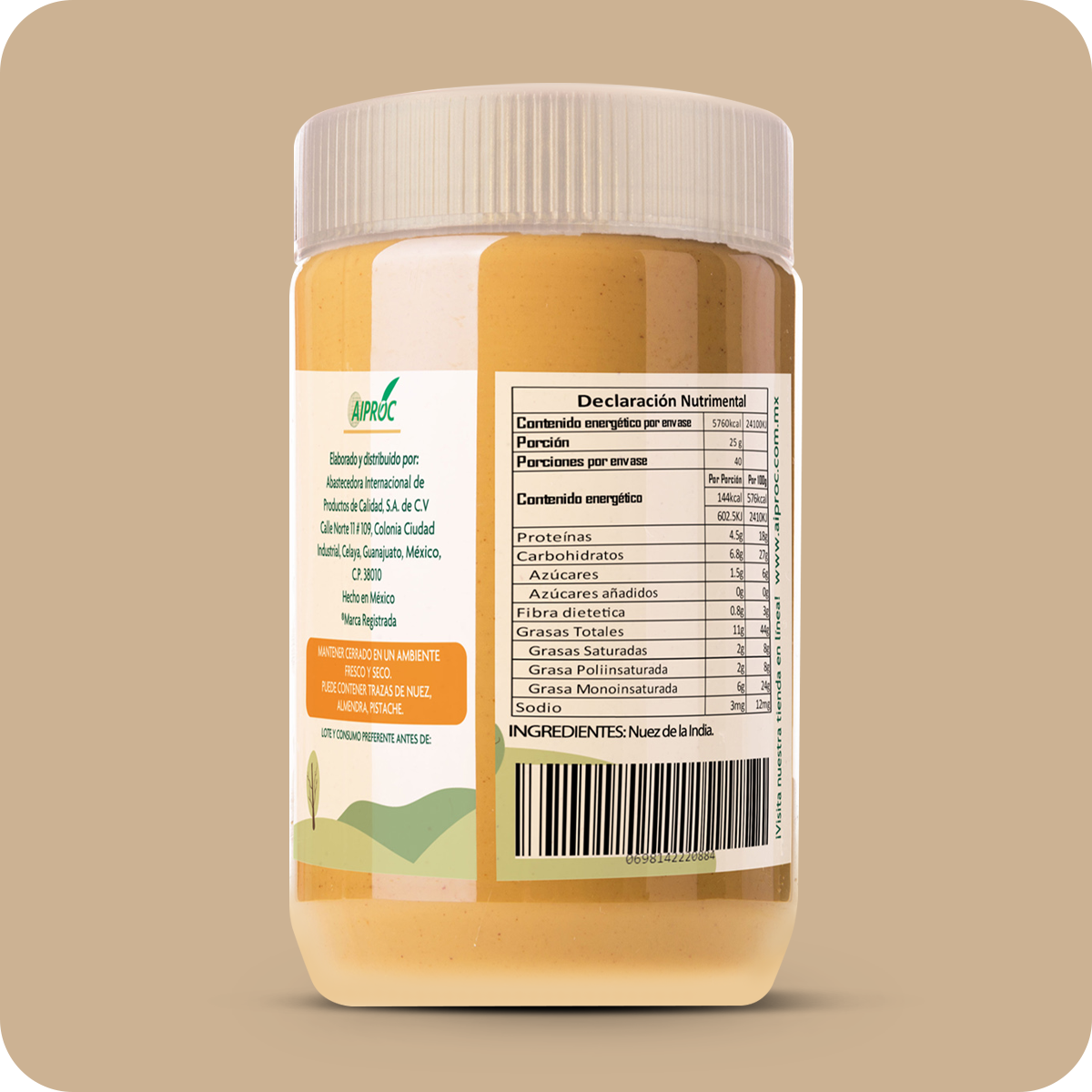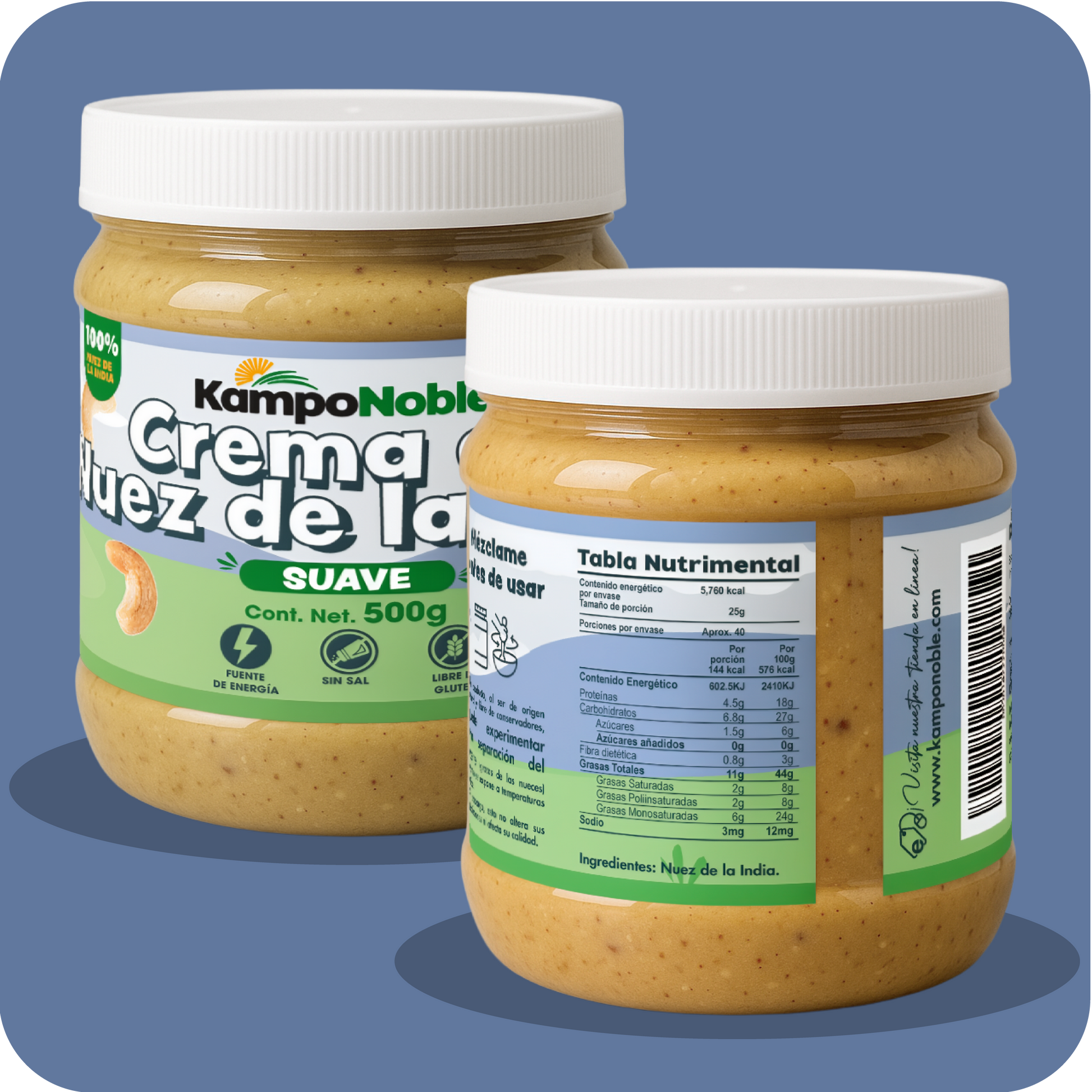 Descubre la pureza de nuestra crema de nuez de la india en presentación de 500 gramos, elaborada al 100% con nuez de la india. Sin aceites añadidos, sin azúcares y sin conservadores, esta crema es una opción deliciosa y saludable perfecta para untar, agregar a tus recetas, o disfrutar sola. Su textura suave y su sabor ligero hacen de esta crema un complemento ideal para una alimentación balanceada.