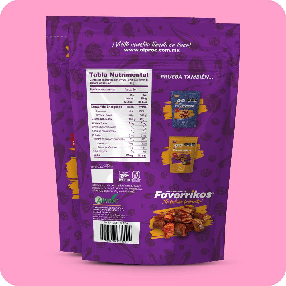 Prueba nuestras habas con cáscara fritas y enchiladas, presentadas en un conveniente paquete de 900 gramos. Este delicioso snack combina el sabor crujiente de las habas con un toque de picante, perfecto para quienes buscan una experiencia sabrosa y auténtica. Ideales para compartir en reuniones, como botana o simplemente para disfrutar en cualquier momento del día.